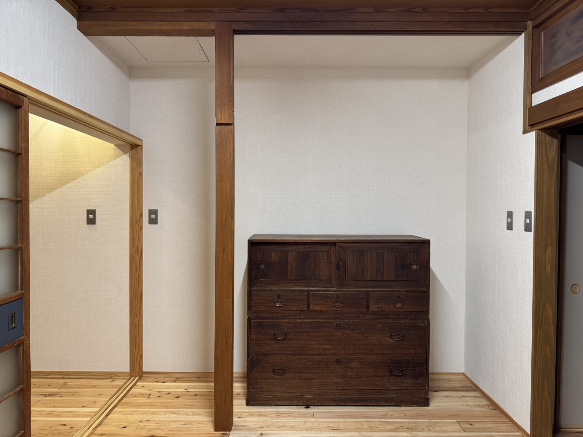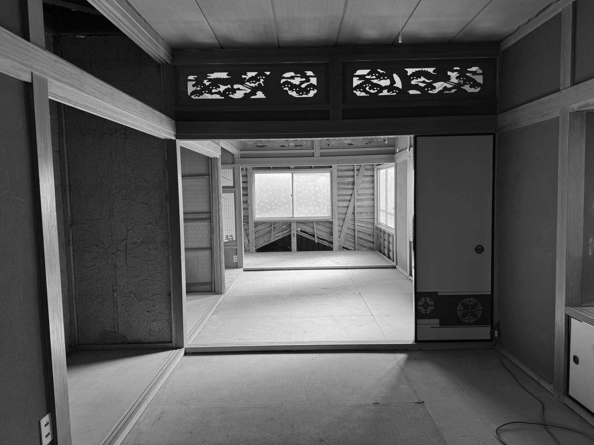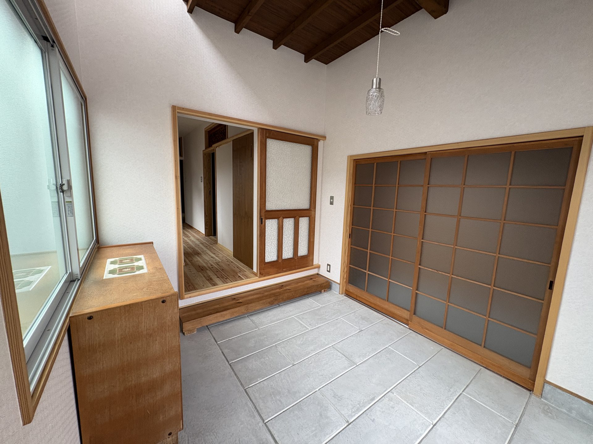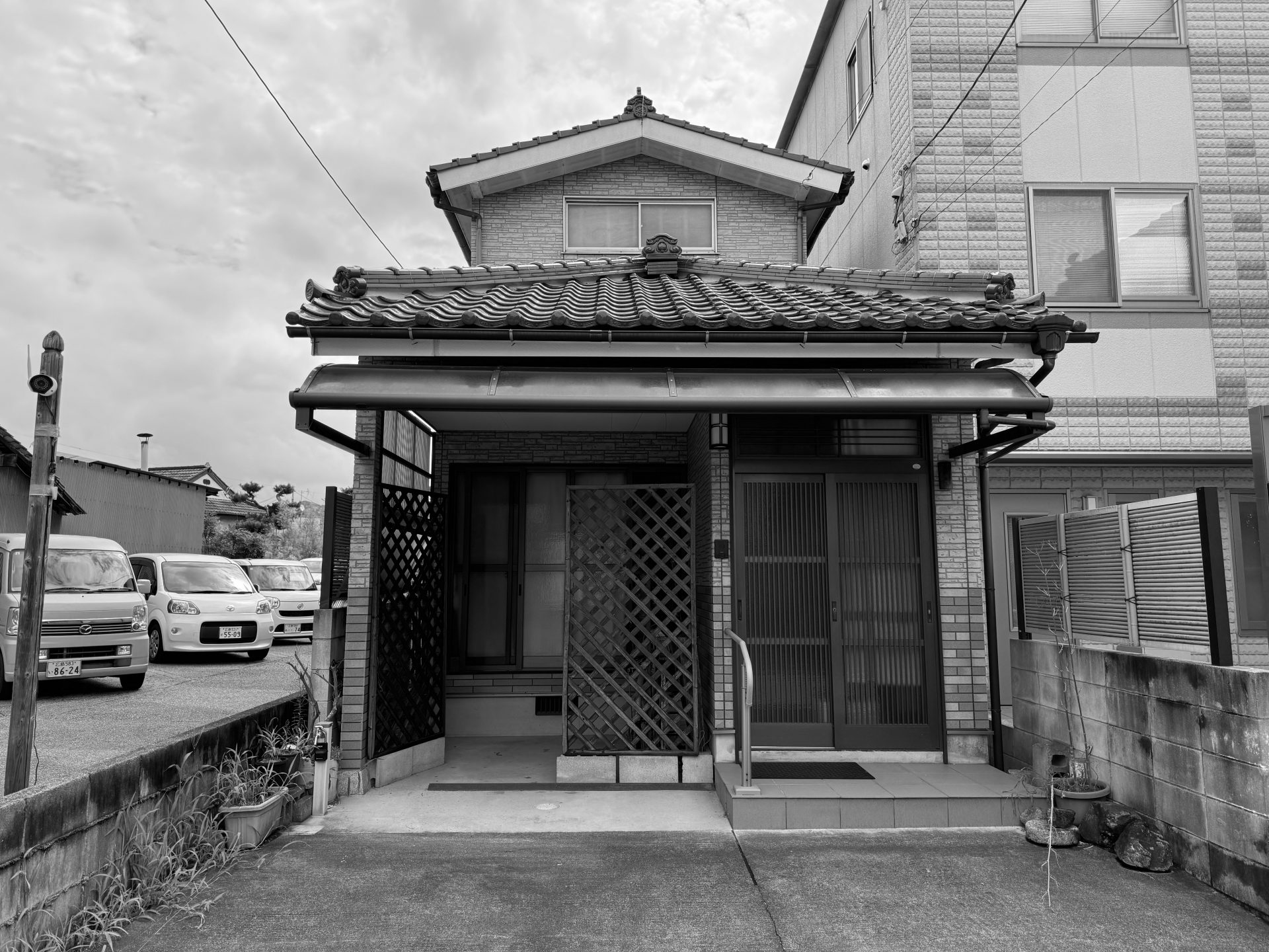 (木製玄関建具と白のなまこ壁と格子と赤瓦を再現アレンジ)
